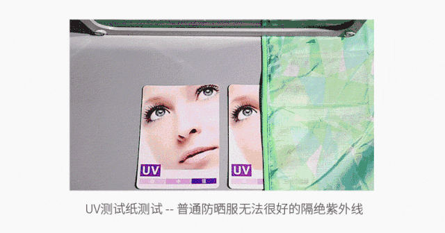 我们找了一个市面上超火的防晒衣进行对比,经过长时间的紫外线灯照射后发现: