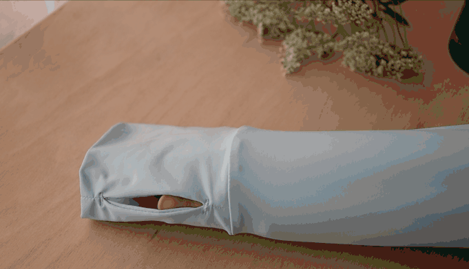 拇指袖的设计,也保护到了我们常常很容易忽略的手背,还不影响行动。