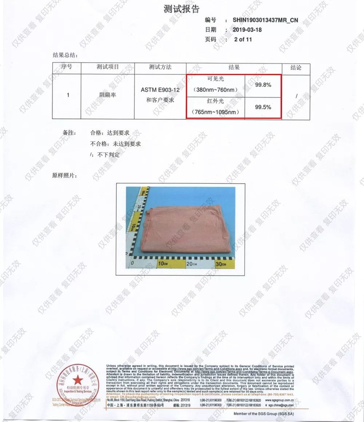它的检测数据上,对红外线阻隔率高达99.5%,对可见光的阻隔率也能高达99.8%。