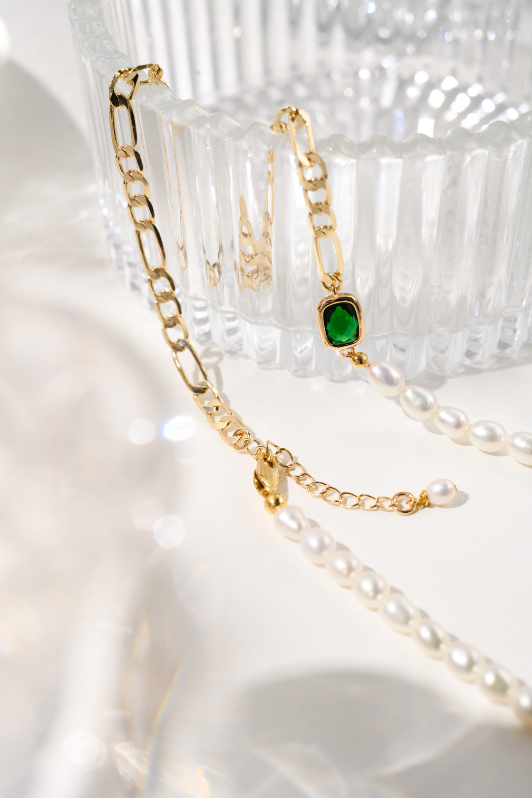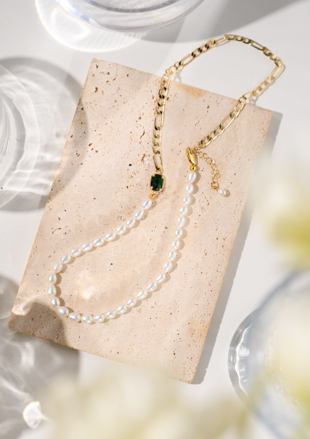 ELOANE GALLERY珍珠拼接金属链条锁骨项链