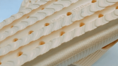 又轻又软,好像一脚踩进了棉花里,整个鞋子是一体成型,随便你怎么揉捏弯折,丝毫不变形、不开胶。