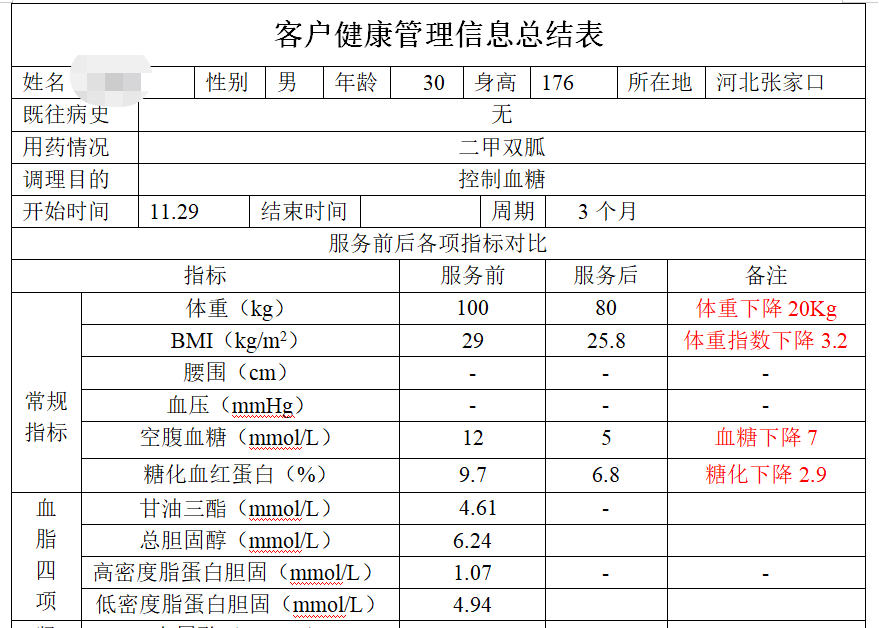 与此同时,他的空腹血糖也从一开始的12点多,降到了5点出头,这是一个非常健康的状态。
