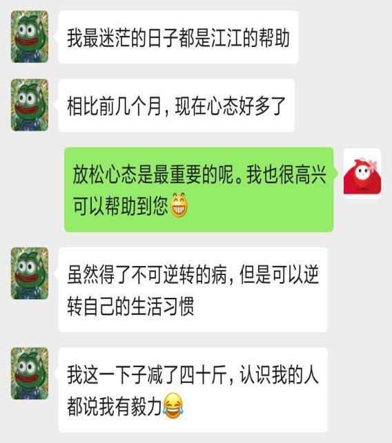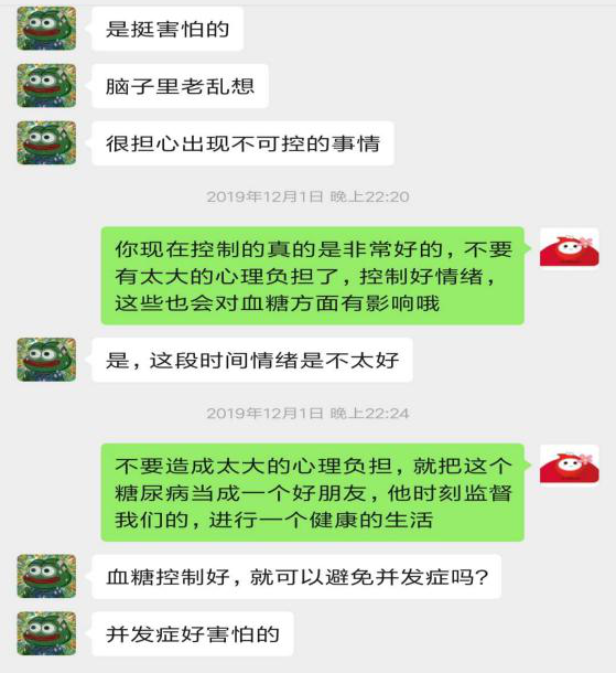 内心中的焦虑无法排遣,但是在控糖特训营,健康管理师几乎是24小时在线,能够及时开导他。