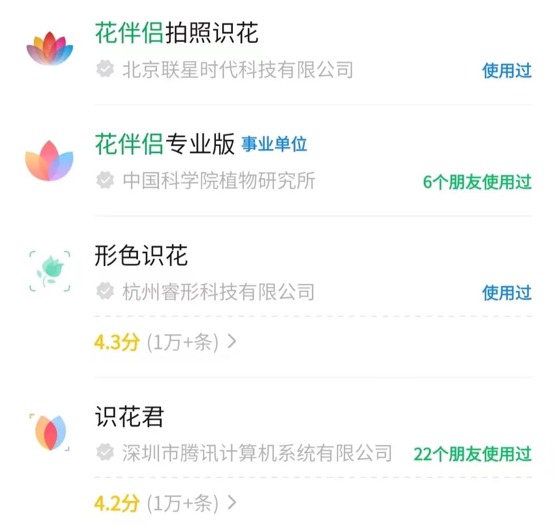 可用形色识花、花伴侣等微信小程序识别植物,方便快捷