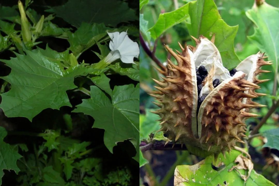 虽说毒性大,但曼陀罗很好辨认。它的果实长满了刺,完全就是生人勿进。它的花是个单生白色喇叭,是绿叶中的显眼包。但也是要提醒小孩子注意,因为他们可能因为好奇吸食花蜜而中毒。