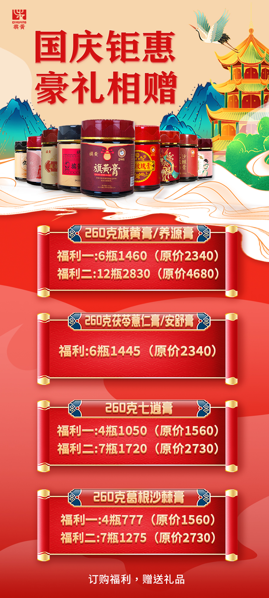而且,旗黄针对各种人群需求,开发不同类型的膏滋,有养血调经的、补肾养精的、安神促眠的、润肺止咳的、补脾祛湿的、养肝降火的……等等,满足您秋冬滋补全方面需求,为您和家里的老人、孩子带去健康的福音!