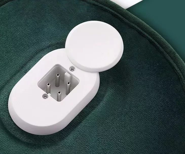 第1重防爆是充电口,采用 4 插导电针,充电不会产生火花,避免危险。 而市面上大部分充电热水袋,用的都是 3 插导电针,非常不安全。
