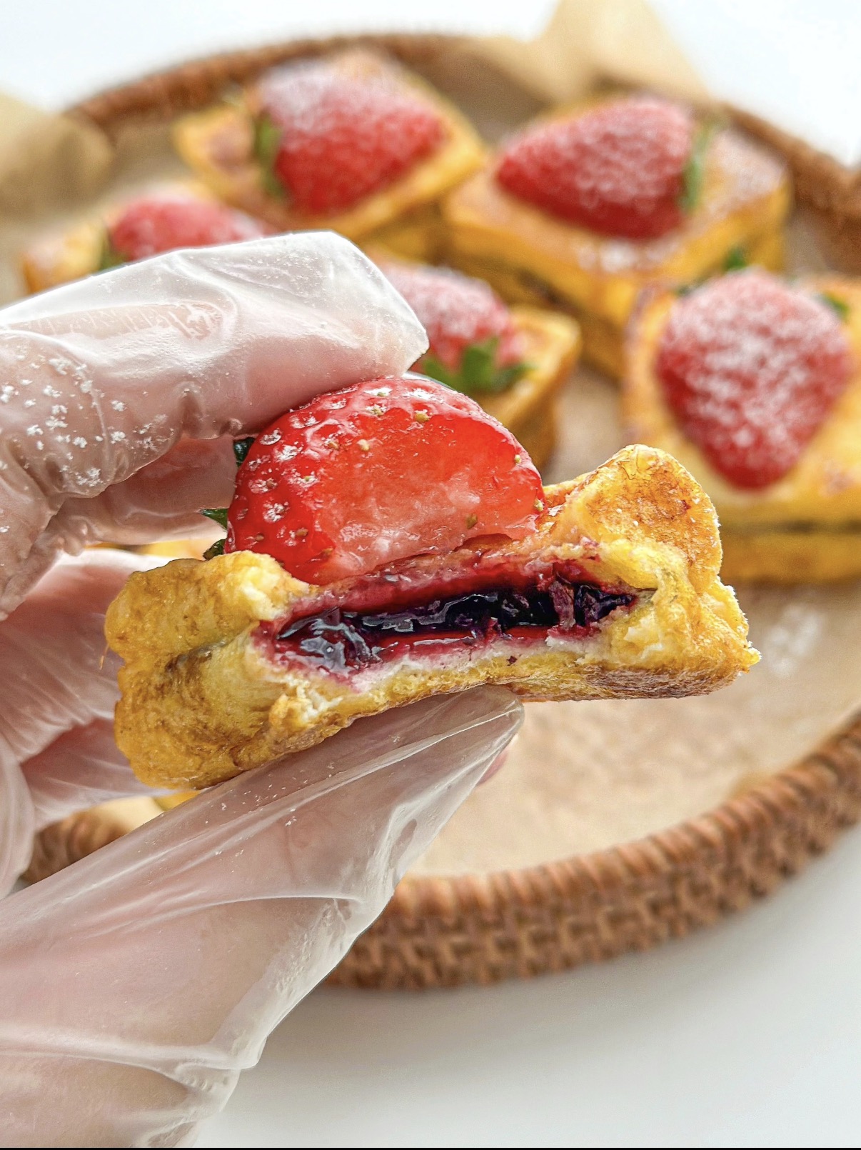 🛒食材: 🍓草莓,🥚鸡蛋,🍞吐司,🫐蓝莓酱(也可以其他果酱)