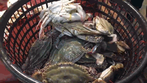 梭子蟹早已个个白胖肥壮