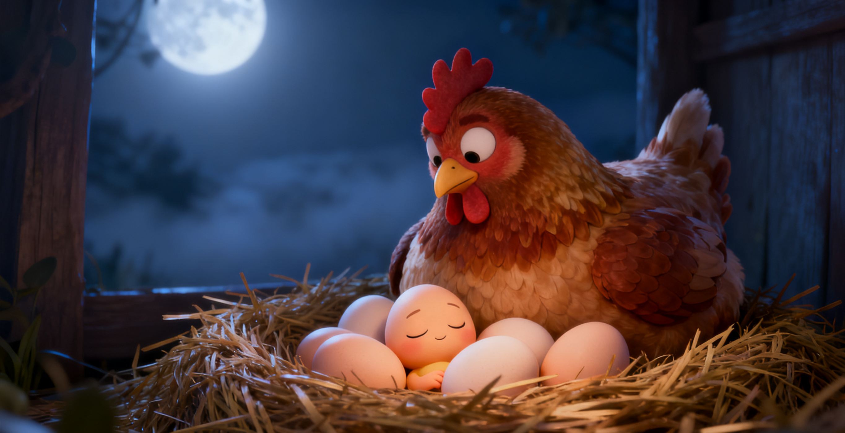 鸡蛋宝宝躺在暖烘烘的鸡窝里,