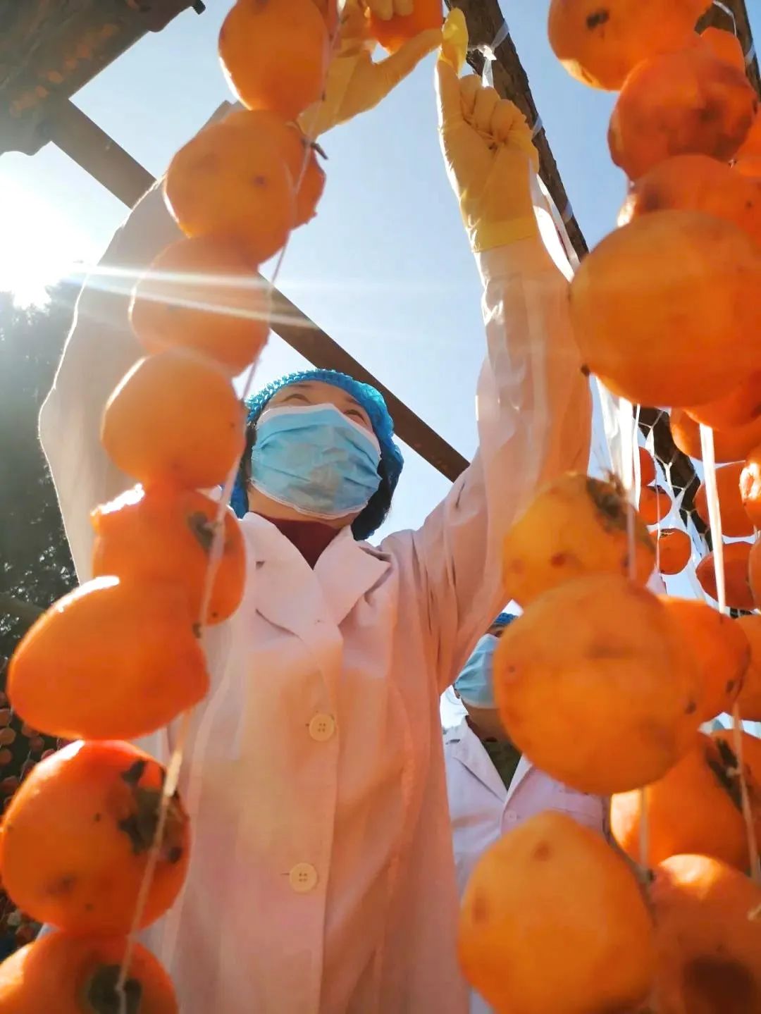 柿饼出霜,在制作中最为讲究且最考验技术、耐心和天气,气温越低,出霜越好。