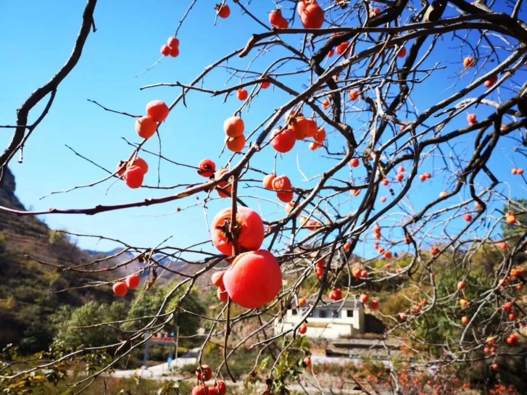 高原干爽的风,吹过太行山,吹红了长在山壁的野柿。