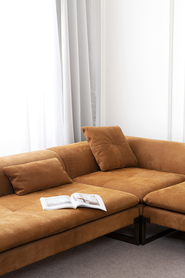 今日分享这款Vime意式组合沙发,经典流线型的设计和复古美感,带着低调优雅,不张扬的风格,完美的几何形状轻松点亮空间。全磨砂真皮面料,纹理清晰可见凸显高级质感,光泽感十足的金属框架稳固承托,显得整体更加时尚轻盈。灵活有趣的模块化组合设计可以自由搭配,适应各种空间类型,宽大坐深满足各种瘫,不要太舒适。
