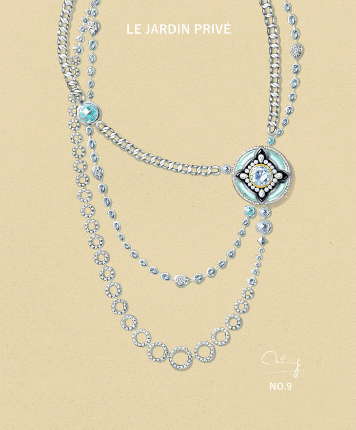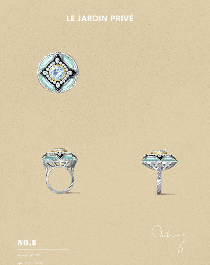 传统的珠宝手绘表现形式是通过颜料在纸张上进行绘制