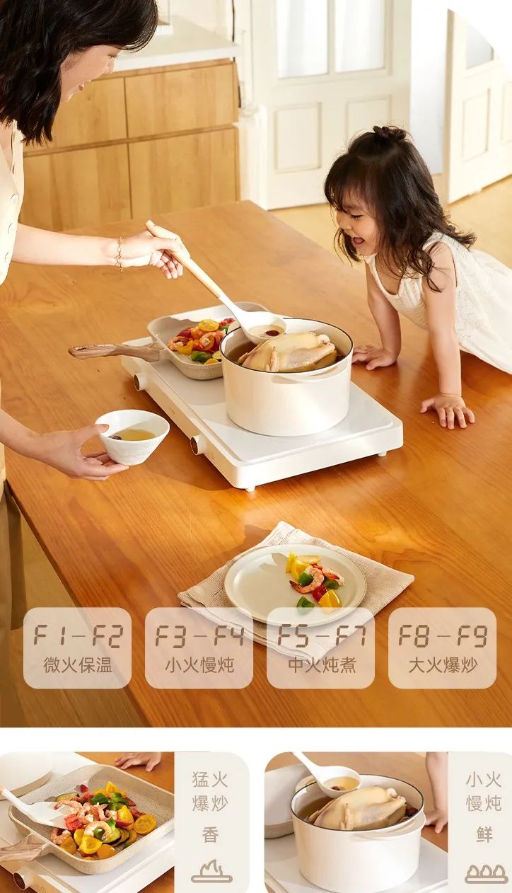 而适盒IH聚嗨炉相当于一个移动灶台,油烟小所以可以放在凉快舒适的空调的房间里使用哦!