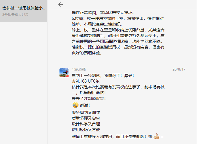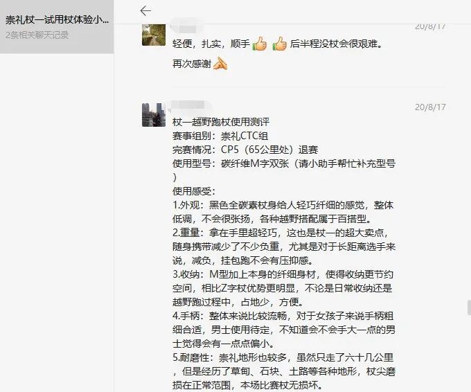 目前手杖经过了各路小伙伴的亲手测试,在江南330、乌蒙山和宁波100等赛道咋们祖国的大江南北。