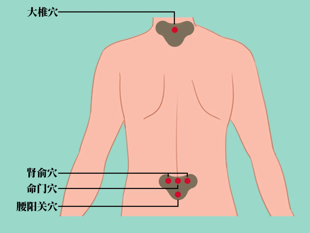 建议日常敷艾灸贴的时候,可搭配肾俞穴、命门穴、腰阳关穴、大椎穴等有助于温补肾阳的穴位,亦可搭配黄精玛咖茶以内调外养,成效加倍。
