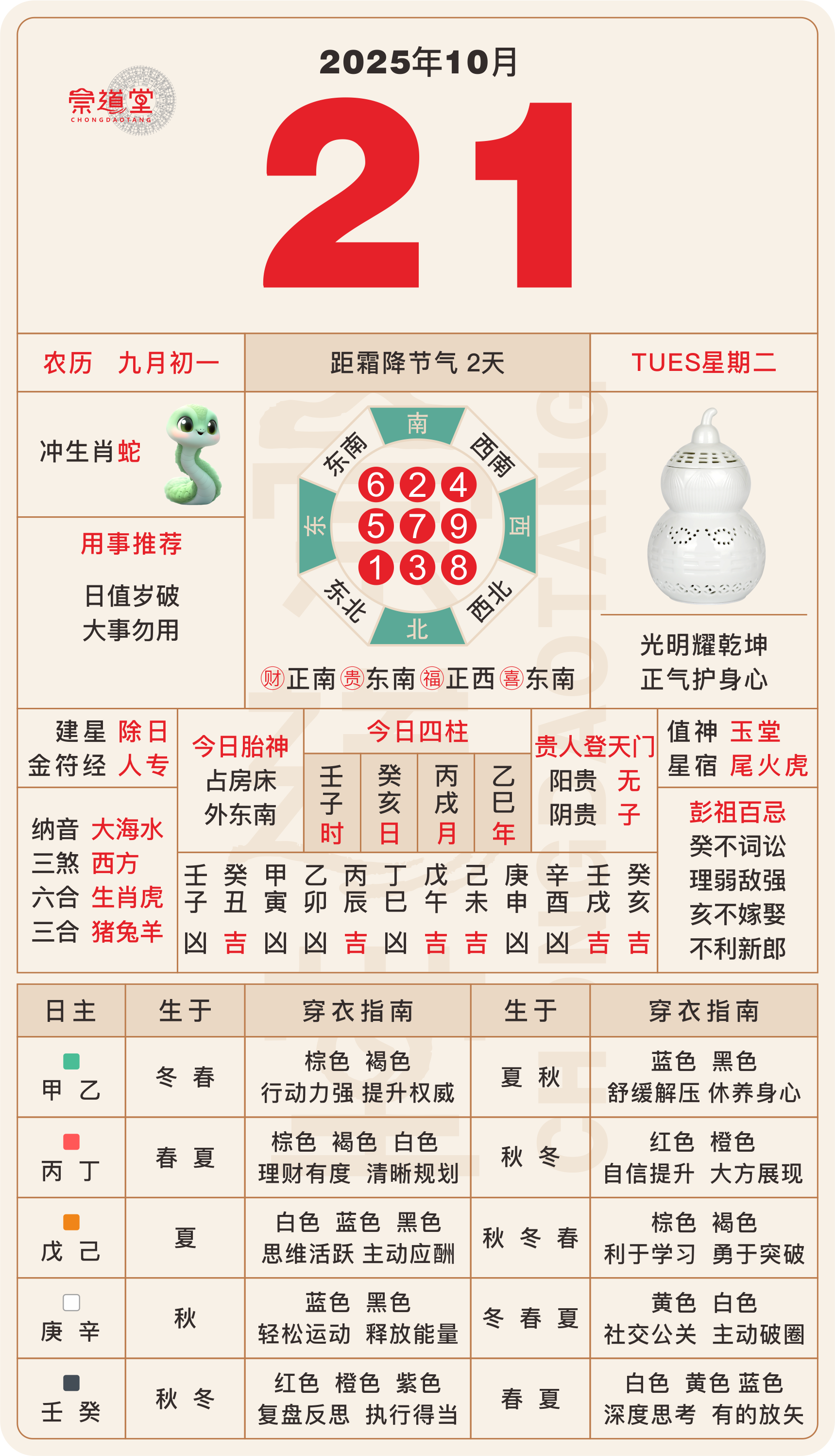 2025年10月30日 农历九月初十 壬申日 冲虎