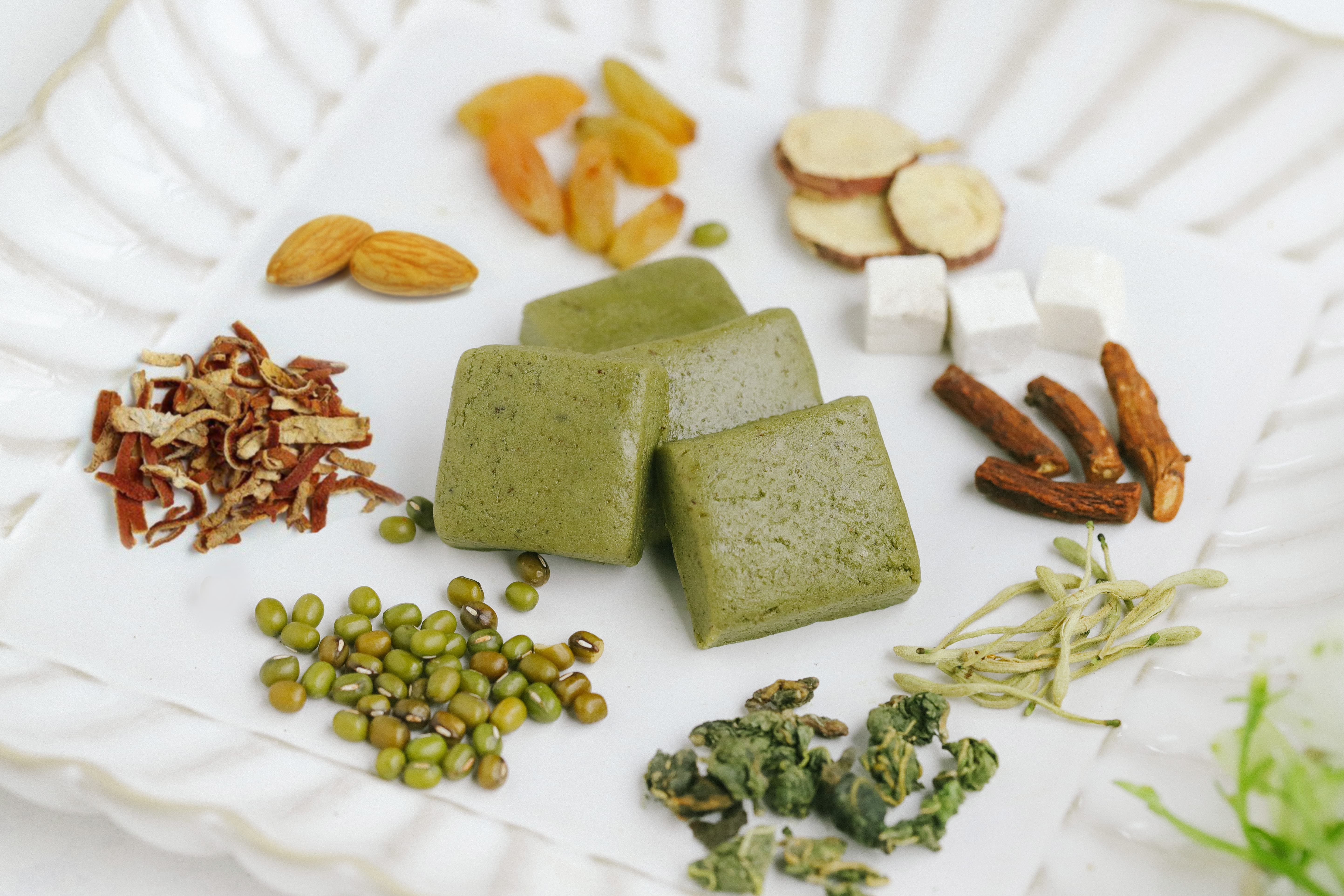 ️蒲公英青蔬糕一共「6青」13味天然食材,我们依然是同50余年中医药领域临床的专家一起研配调制!