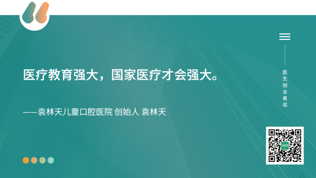 面对“创业初心”这个问题,袁林天告诉诊锁界:“四医大(第四军医大学,现改名为空军军医大学)在儿童口腔上技术很高,影响力很足,专家人才也很充裕,但尽管如此,很多老百姓看病仍然挂不上号,即使我是口腔医学博士,是教授,如果没有能为老百姓看病,又有什么价值呢?”
