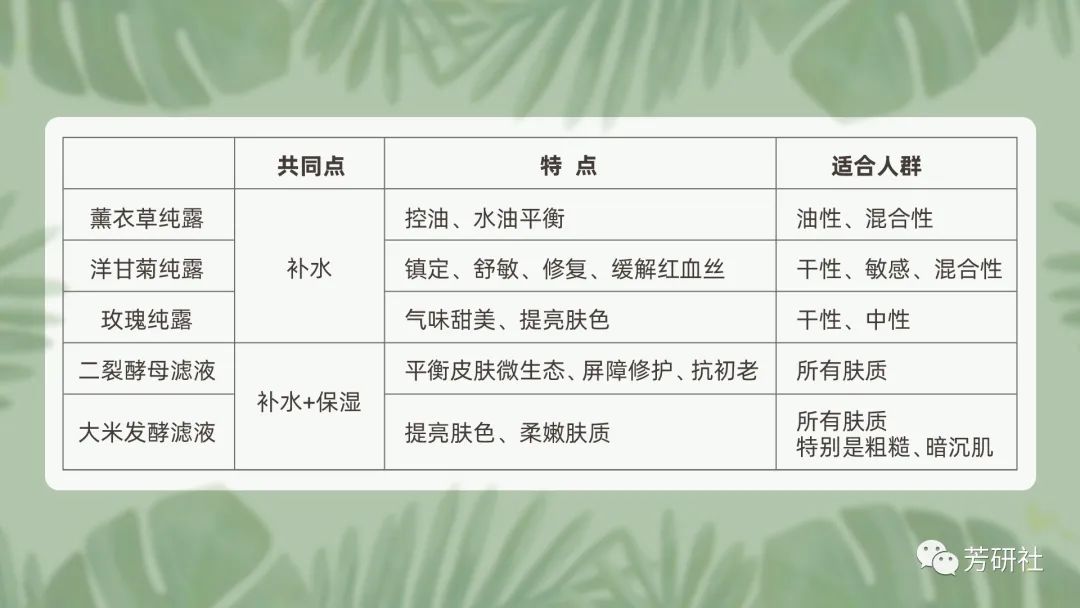 附上几种纯露和滤发酵液的选择指南,供大家参考:
