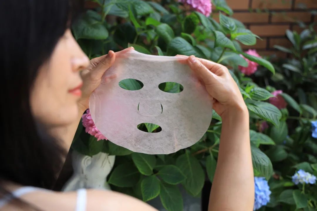 由于本身比较薄和柔软,浸泡之后打开有难度,所以急性子的小伙伴不建议在容器里浸泡,可以拿在手里,用纯露喷湿,直接贴在脸上。