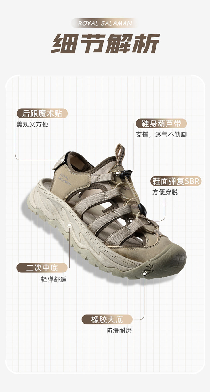推荐理由:缓震的EVA中底,吸盘式的抓地大底!镂空设计 透气排水,鞋面采用新技术高削超纤,脚背利用四面弹复SBR,方便穿脱镂空设计,快干舒适适合涉水和户外多种场景!
