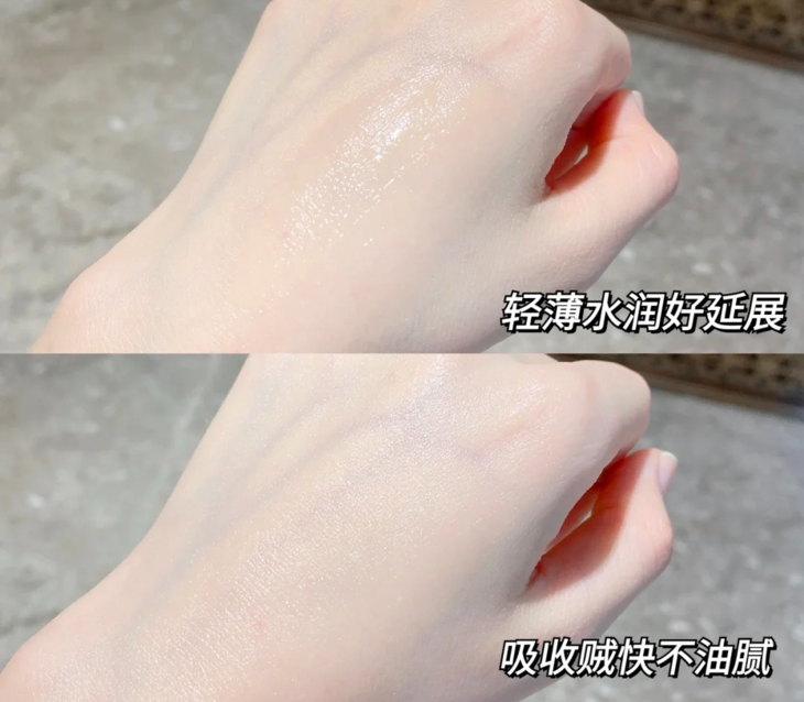 啫喱状态的质地,感觉非常浓稠水润,上脸很好推开,吸收速度快而且没有黏腻的感觉,很清爽。