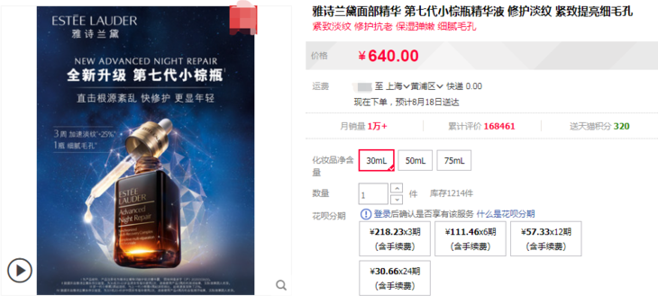 雅诗兰黛小棕瓶系列买一送一,99元得两件!