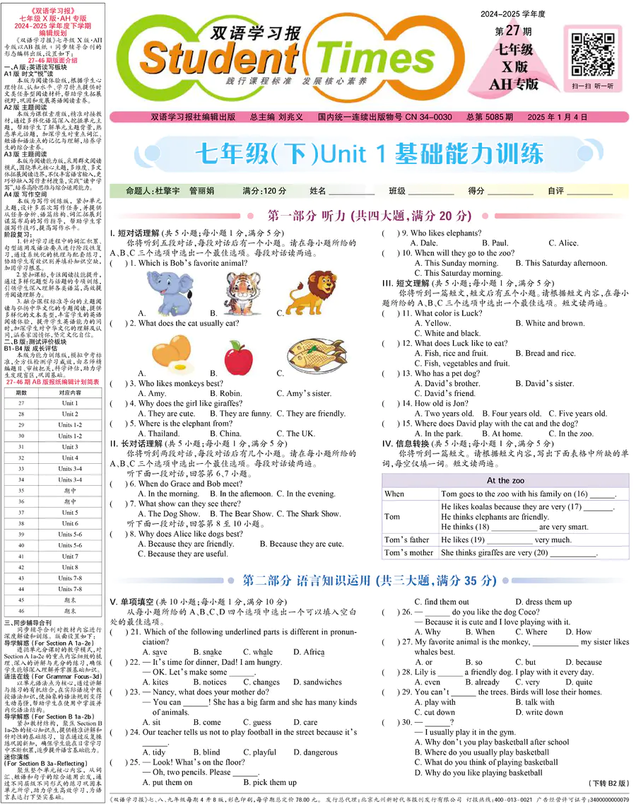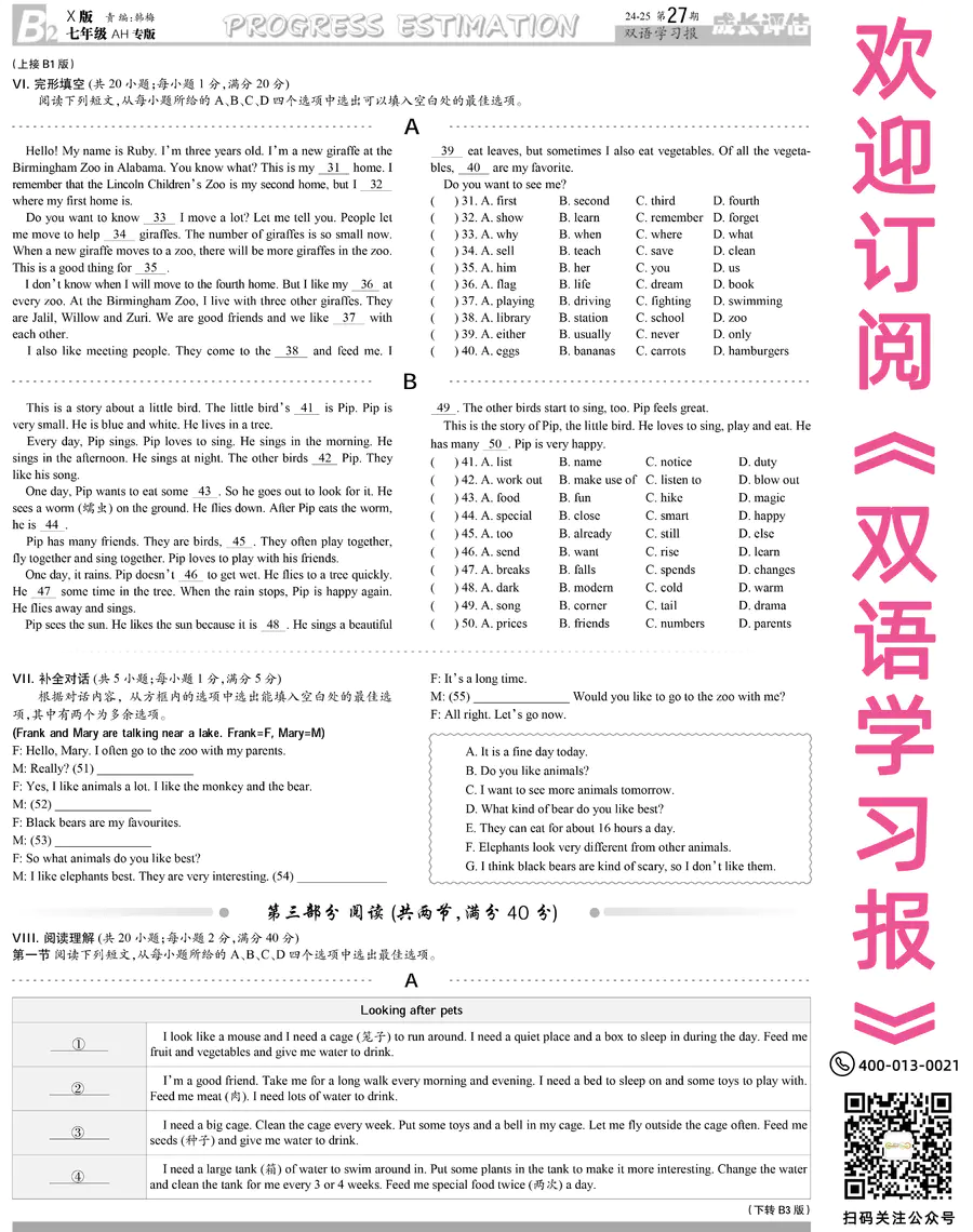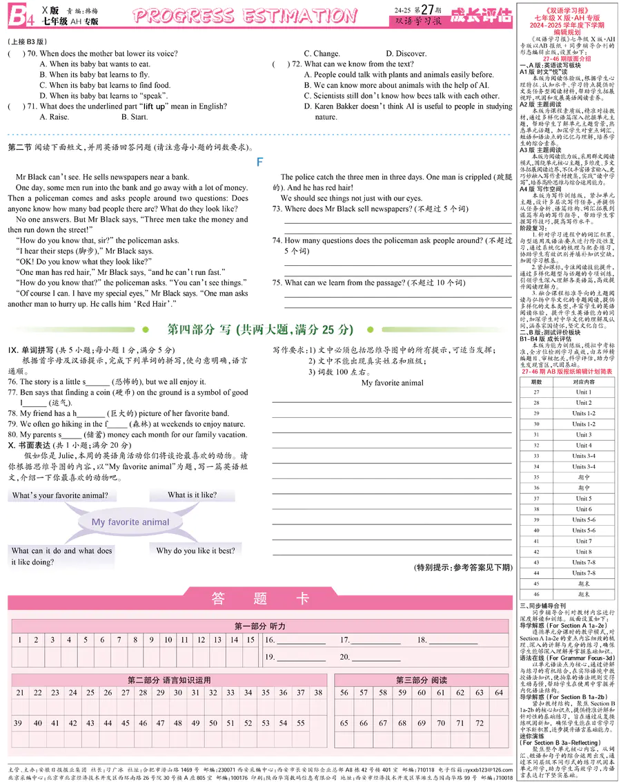 《双语学习报》七年级 X版AH专版 第27期
