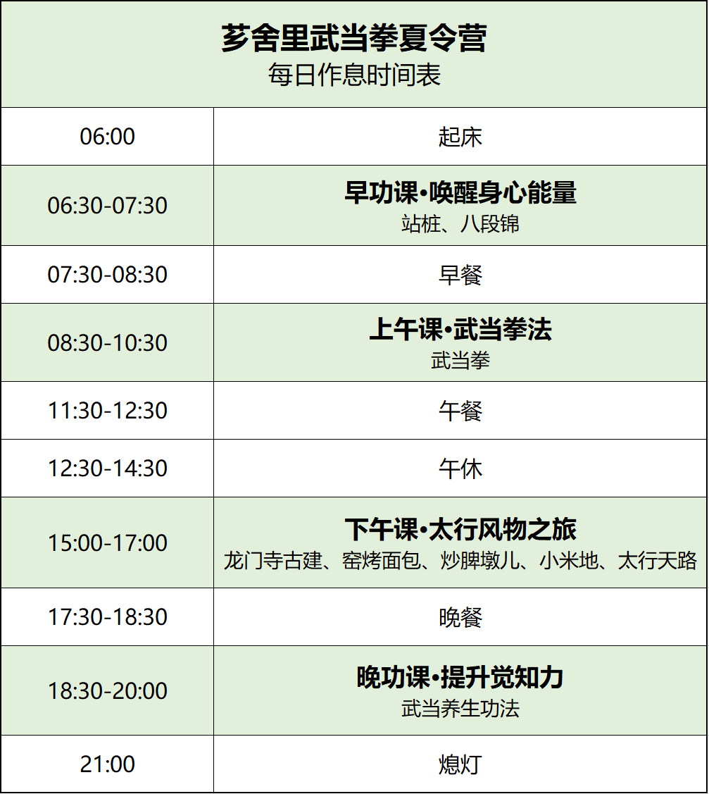 (注:第一天和最后一天为报道入营和结营,其他时间按照下面作息表上课,空余时间安排其他活动,如有调整另行通知。)