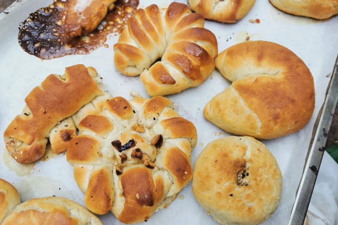 刚出炉的面包散发着特有的香气,每次出炉就被大家一抢而空。