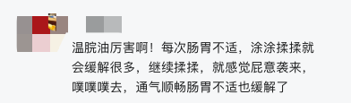 但是温脘油是少有的那种,认真按着经络搓,见效不亚于内服的一个宝藏,我现在吃药少了很多,每天观察大便也正常啦,如果是老胃病,脾胃虚弱的人,非常推荐试试。