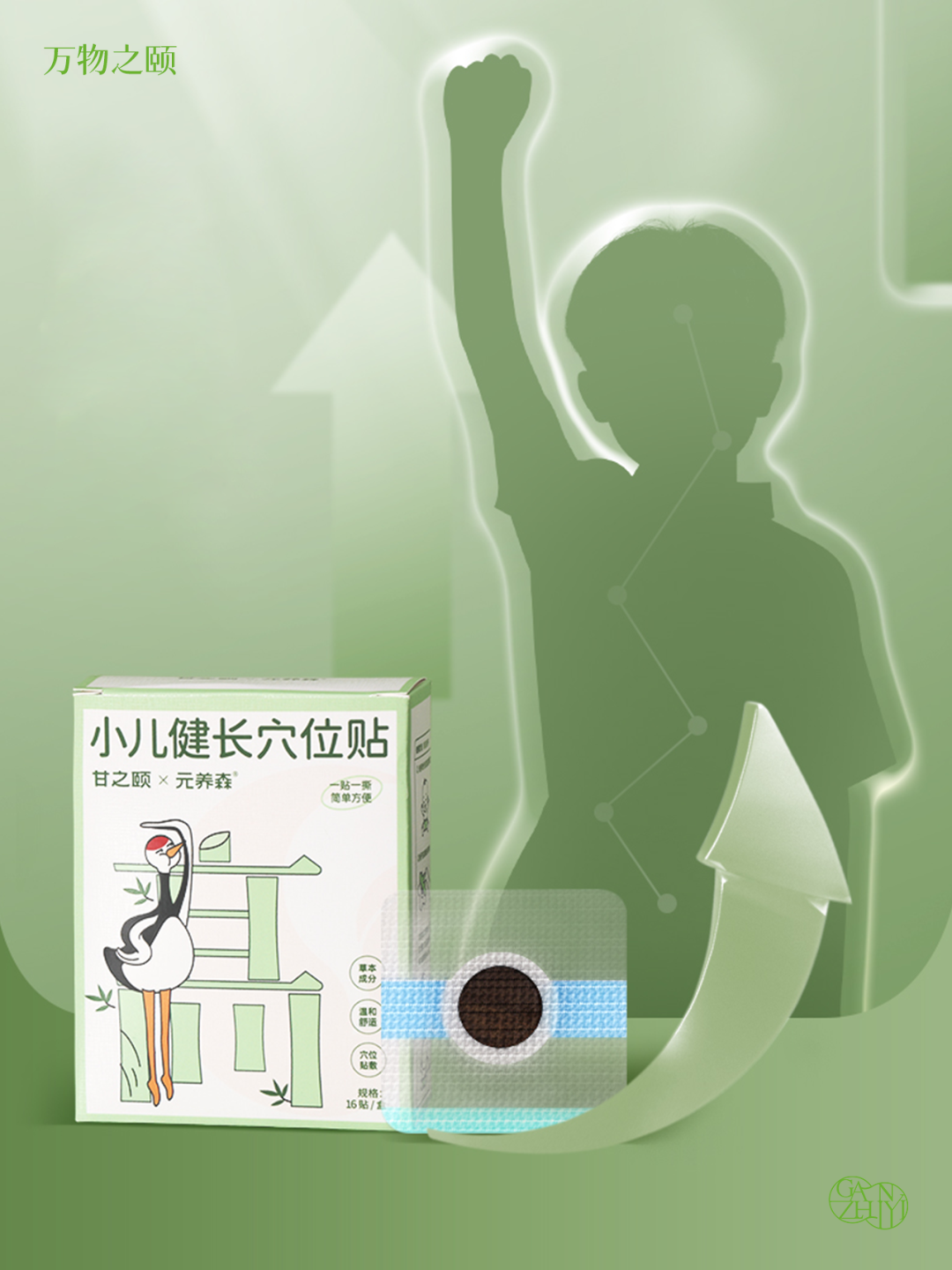 甘之颐【小儿健长贴】,将有益于儿童生长的原料制成外敷膏贴,在春季三个月里,贴在关元、肾俞、神阙、足三里、涌泉等8处穴位,通过穴位刺激 + 草本滋养的双重作用,由外调内,辅助孩子成长。
