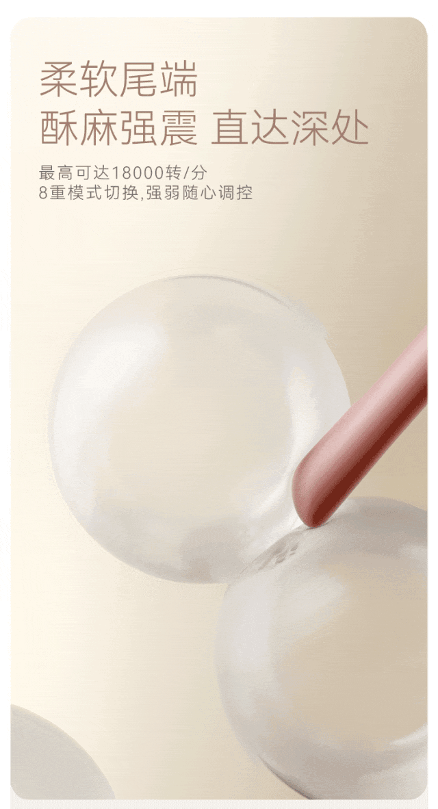 柔软的质感,再搭配上穿透力十足的强震,在肌肤上就会形成高速而密集的“弹动”,没有硬质点潮笔那种异物怼着的感觉。