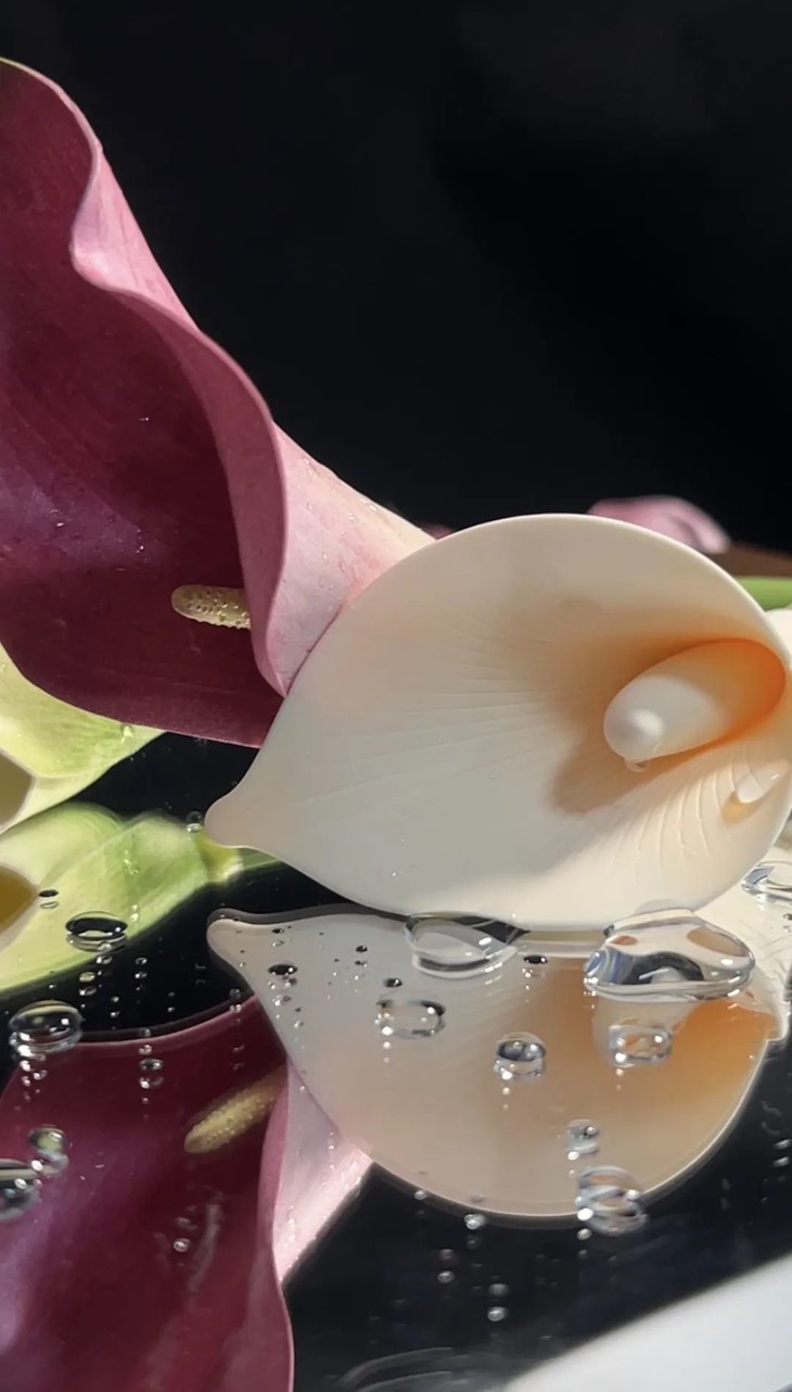 IPX7级高等级防水,清洗方便,经久耐用,在浴缸里也能畅玩,氤氲的水汽衬托得这朵马蹄莲更娇媚了。