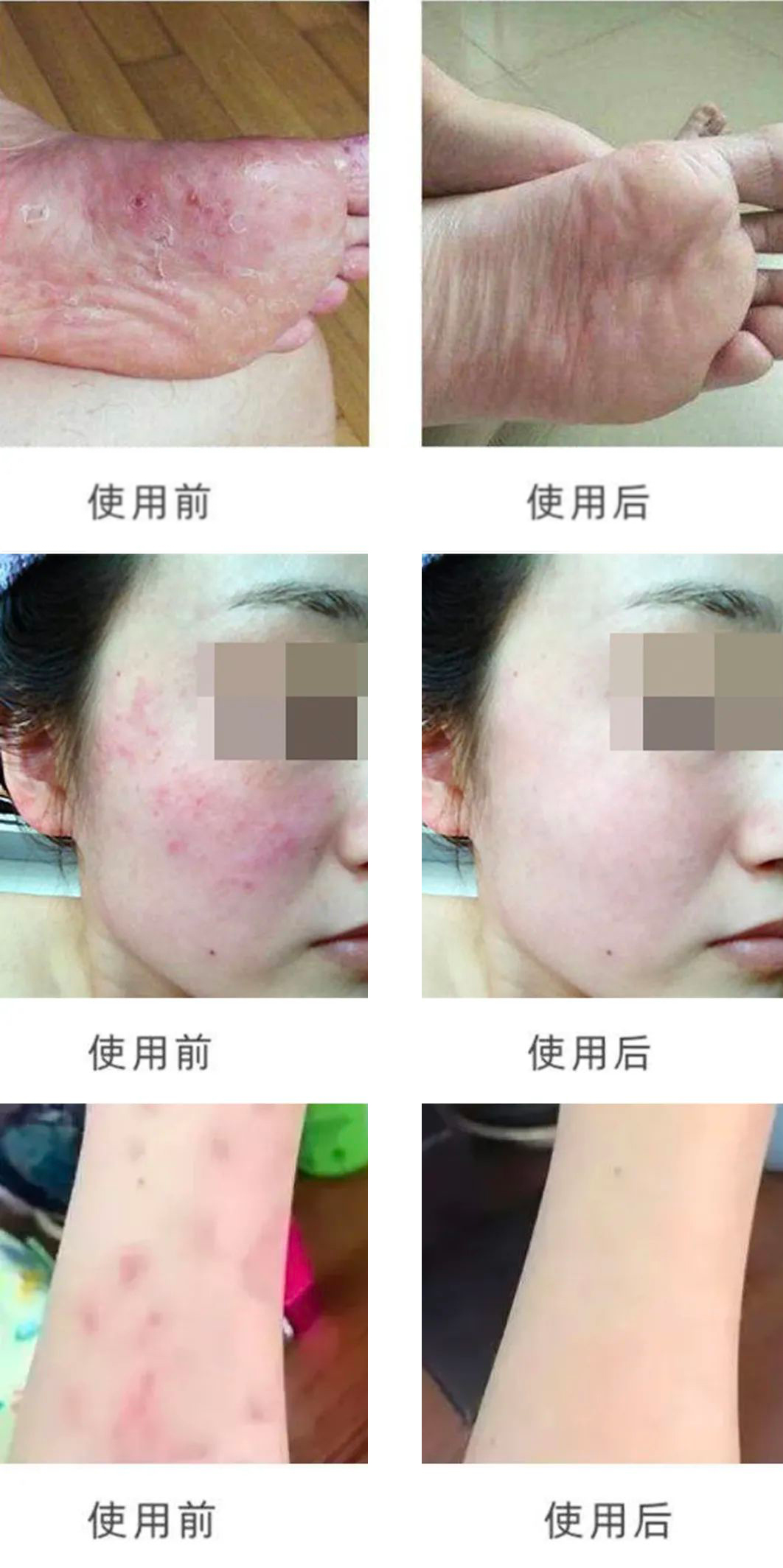 症状严重患者,使用数周以上见 效果,发红发焱干燥的皮肤渐渐恢复本色,起斑起疹的皮肤区域也会痊yù!