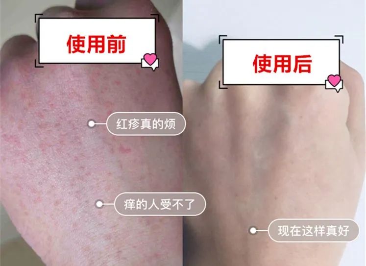 一看功效如此强大,收到货后,我迫不及待地试了一下,效果出乎意料的好,一段时间腿上手腕上的疹子全好了!