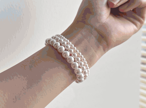 珠子够亮够美,在视觉效果上和真正意义上的珍珠几乎无差别:正圆级别、0瑕疵、大小均匀。