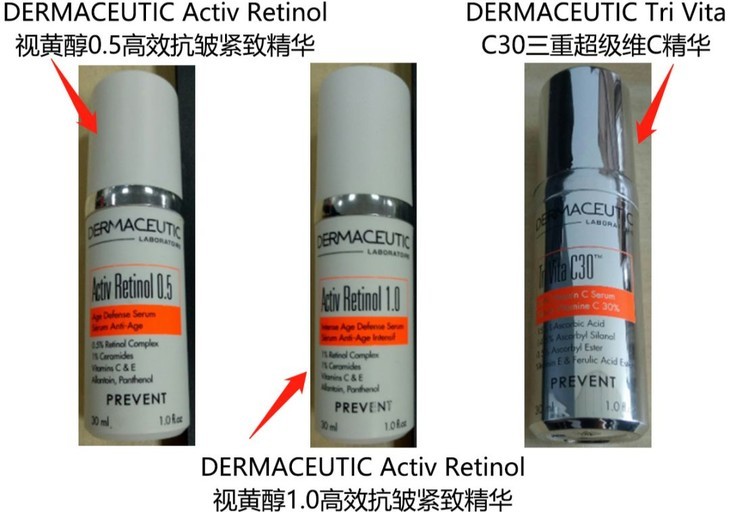 可能就是因为对前面维A醇产品的喜爱,让@梦冶勇往直前地冲向了DERMACEUTIC1.0的A醇,结果体会到了更厉害的控油效果,但,也体会到了人生第一次烂脸……不过,他没有放弃,A醇不能再高了,那试试这家别的精华总可以吧,所以在他养好脸之后,又奔向了DERMACEUTIC的三重维C精华,竟然也体会到了控油效果,他的原话是“这款vc上脸,居然让大油田第一次体会到紧绷感”。
