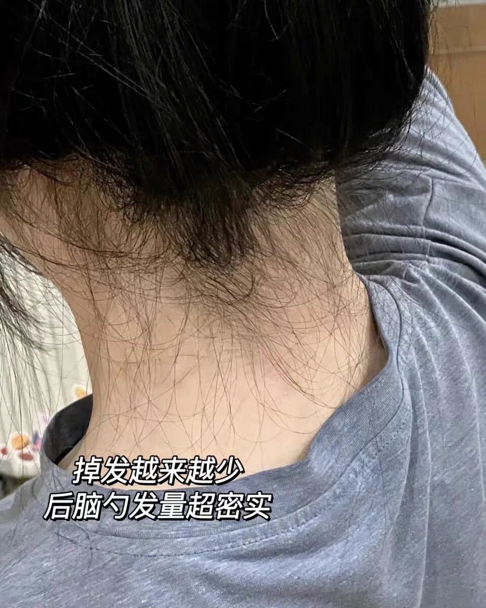 “终于体会到发根变硬、发缝变密是什么感觉了!而且新长出来的小绒毛竟然是黑色的,真的太惊喜了!”
