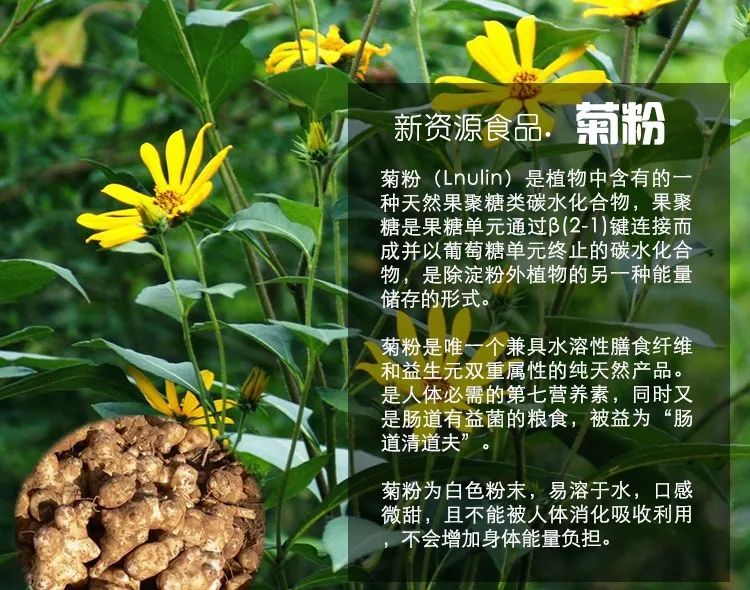 菊粉是除淀粉外植物的另一种能量储存形式,是十分理想的功能性食品配料、同时也是生产低聚果糖、多聚果糖、高果糖浆、结晶果糖等产品的良好原料。