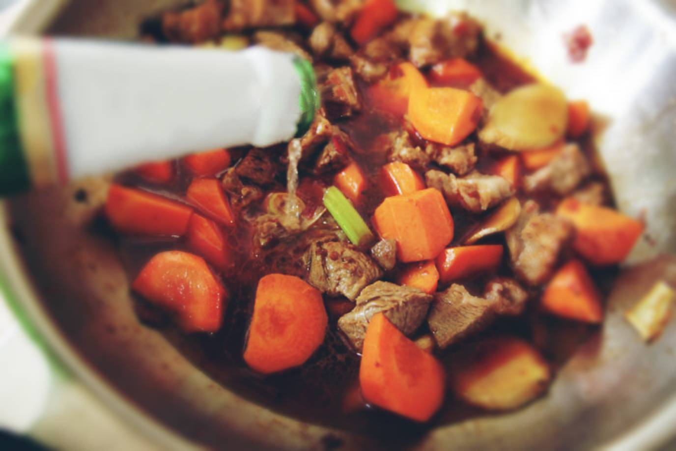 郫县豆瓣酱2汤匙,啤酒1瓶,葱段,姜片,蒜,糖,盐,老抽,香油;