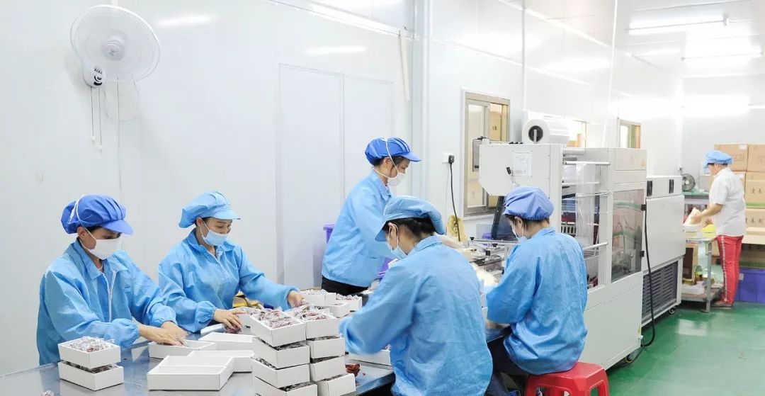 整个生产过程经过选材、晾晒、切片、除核、烘干、清洗,配比、除菌,再由穿着消毒服的造作人员在无菌环境下加工而成。