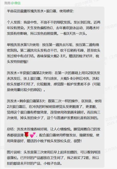 详细描述了使用“洗发水+蛋白霜”这个组合的真实感受