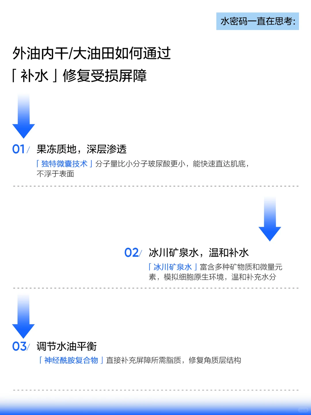 ✅ 效果:冰川水比玻尿酸分子更小,更容易快速渗透,缓解干渴警报🚨