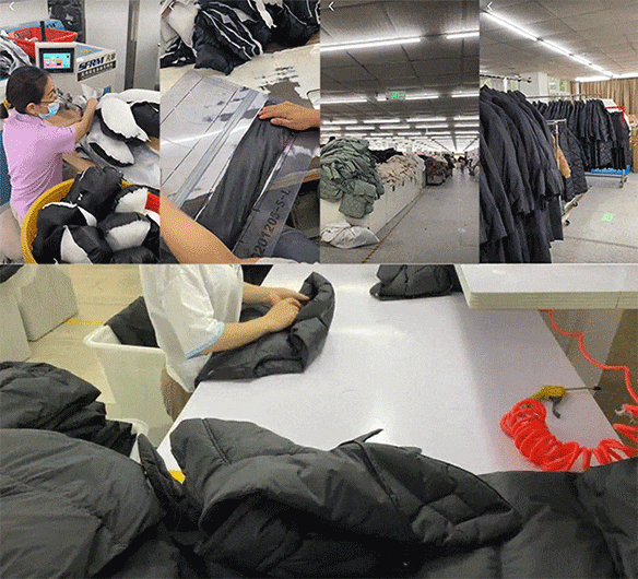 看看工厂一整套专业流水进程,穿上身的空气感、蓬松度都十足温暖,冬天穿身上想不暖和都难。