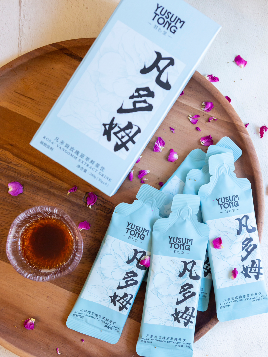 如果你工作来不及泡茶,可以试试它家的凡多姆玫瑰原萃鲜浆饮。