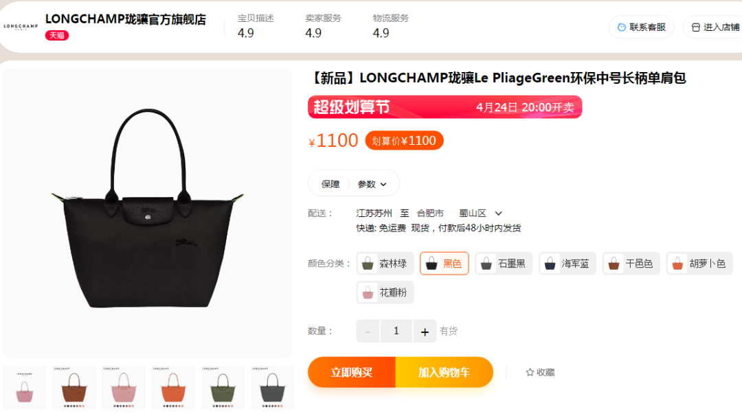 这次返场还是给大家带来了专属的福利,699元直接拿下,有正规品牌授权,LONGCHAMP珑骧包中检溯源;奥莱直发,不用担心品质。