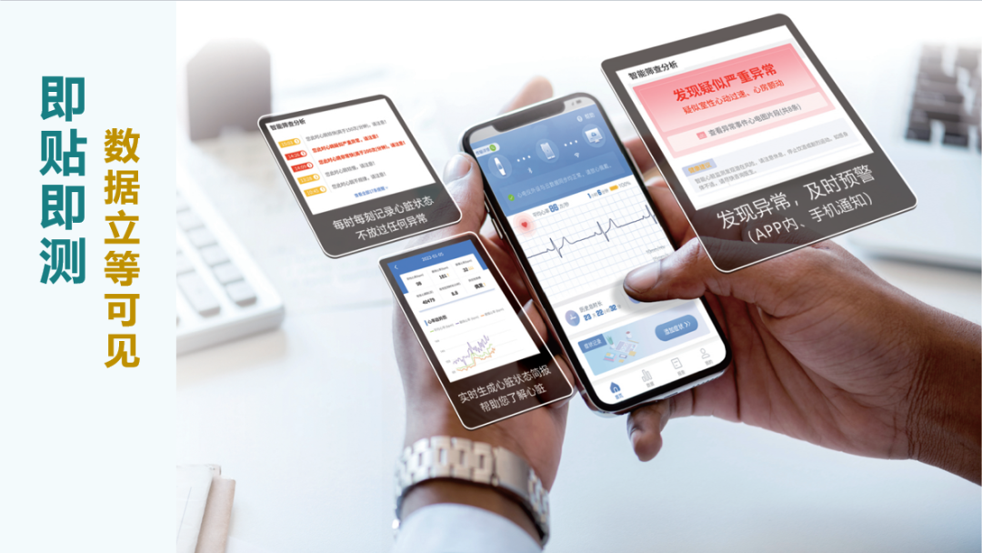 CardioGuard®全周期智能心脏监测系统,融合人工智能与大数据技术,采用轻薄贴片设计,实现无感佩戴。无论是工作、运动还是睡眠,都能持续提供医疗级监测,助您及时发现潜在风险,全面掌握心脏健康动态。